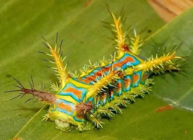 洋辣子的颜色那叫一个绚丽,搭配上一身的渗人的毛刺,视觉震撼效果满分。长大以后也是个害虫,怎么破坏树林我们暂且不提,就幼虫时期杀伤力就已爆表,你这辈子为谁放声大哭过,那可能就是被洋辣子蜇过。它们擅长躲在树叶的背面啃食树叶,尤其是喜欢果树。就算你不去偷桃摸枣,从这些树下走过,也可能与时不时掉下来的虫子亲密接触,哪怕路边死了的洋辣子,那也是百足之虫死而不僵,只要接触到你的皮肤,跟活着蛰到你效果一样。如果碰巧过敏,有生命危险也不是夸张。缓解办法有几个:用胶带粘出刺毛,用凝固剂涂抹后拔除刺毛,用碱性肥皂水中和毒素。