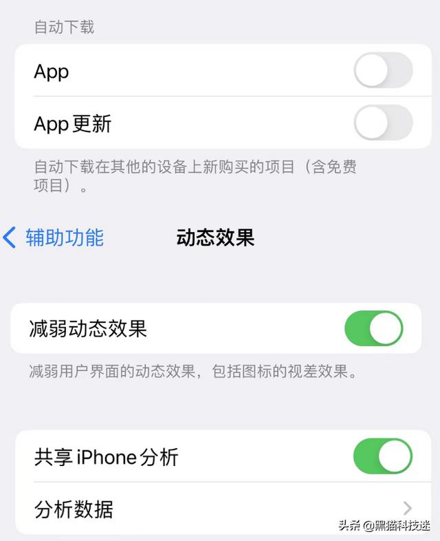打开设置-辅助功能-动态效果,选择减弱动态效果,关闭iOS系统的过渡动画。iOS系统的过渡动画主要是用GPU渲染的,虽然看起来更“顺滑”,但是会大幅增加手机的发热。