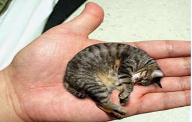 但是它们这么小是因为基因缺陷造成的,它们在到了猫的正常发育年龄,体型还是特别小巧。这就是世界上最小的猫了。
