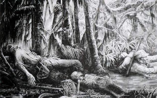 饥饿和疾病,到处都是死去的战友。因为不停地下雨,倒在路边溪边的尸体被长时间浸泡,已经胀得不成人形。路上还经常遇到已经腐烂的尸体,让人看了十分害怕。更关键的是,尸体被雨水冲得到处都是,大家不敢随便喝溪水,只能用芭蕉叶接雨水喝。