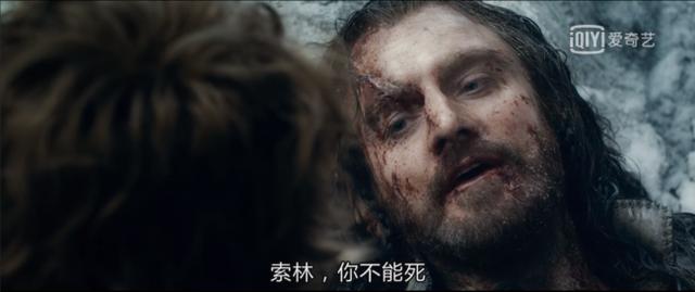 丹恩二世矮人部队节节败退,被打得都退到了城下,此时醒悟过来的索林带着十二名矮人杀出,给矮人提起气势,从正面刚半曾人军队。