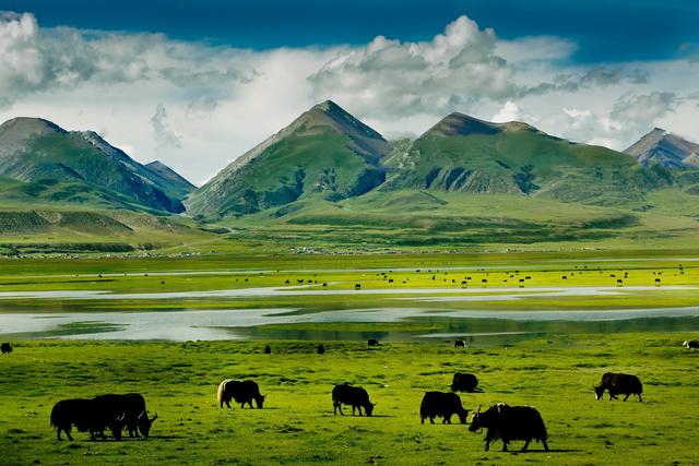三江源地区是黄河、长江和澜沧江(湄公河)三条大河的源头。这里地处青藏高原上,属于高山气候,虽然年降水量较少,但是海拔高气温低,蒸发弱,地表水十分丰富,这里是我国海拔最高的天然湿地。长江总水量的25%,黄河总水量的49%和澜沧江总水量的15%都来自这一地区,古人诗云“黄河之水天上来”,实际上长江和澜沧江的江水也来自黄河源头那片天。