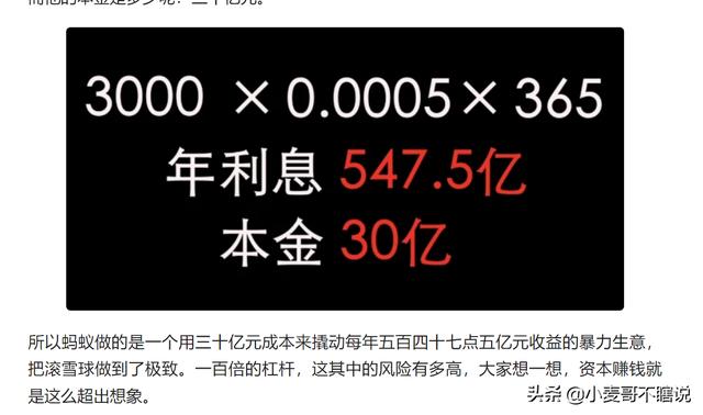 有人粗略测算过,在蚂蚁上市前,他们用30亿元本金做着3000亿规模的高利贷生意,赚着大约每年500多亿的毛利润。简单说就是:100倍的经营杠杆风险,16多倍的毛利。简直是闻所未闻的惊悚,不知道一贯擅长套路各类金融衍生品的华尔街大佬们,看着这个是不是也要顶礼膜拜呢?