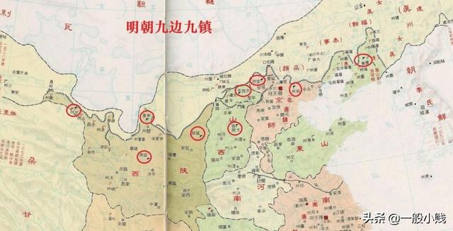 朱元璋时期的防御体系(长城外的黄色部分)与中后期九边防御体系对比