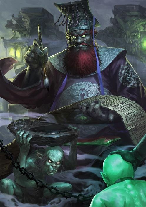 阎罗王-包拯,原本为第一殿阎王,因为同情枉死之人,并将其还阳,所以被贬至第五殿。