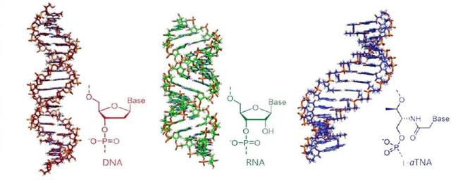 这促使科学家开始寻找其他合成简单,并且能够携带遗传信息的核酸类似物。此次最新研究的主角就是其中的一种。这种名为非环形L-苏氨醇核酸(L-aTNA)的XNA分子能够与自身以及DNA、RNA形成稳定的双螺旋结构。由于L-aTNA是非环状结构,因此相较于含有环状结构的RNA来说更容易合成。