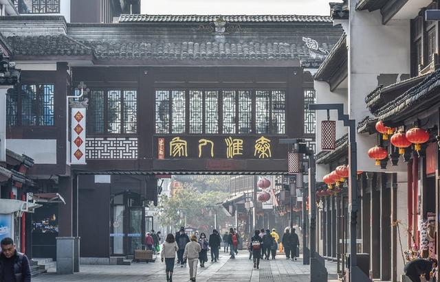 从夫子庙出发,走过秦淮河上的文德桥,从媚香楼往西南行数十米,就可以看到乌衣巷了。巷子看起来有点过于普通,就像一条随意的江南小巷,巷子挺窄的,路面用青砖铺成,两边是矮矮的仿古建筑风格的民房。相比于其他名胜古迹来说,这条巷子简朴得厉害。可是了解了乌衣巷的历史就会知道,它不仅是条小巷,更是金陵兴亡的象征,也是古今变迁的代言,带着沧桑的历史气味。