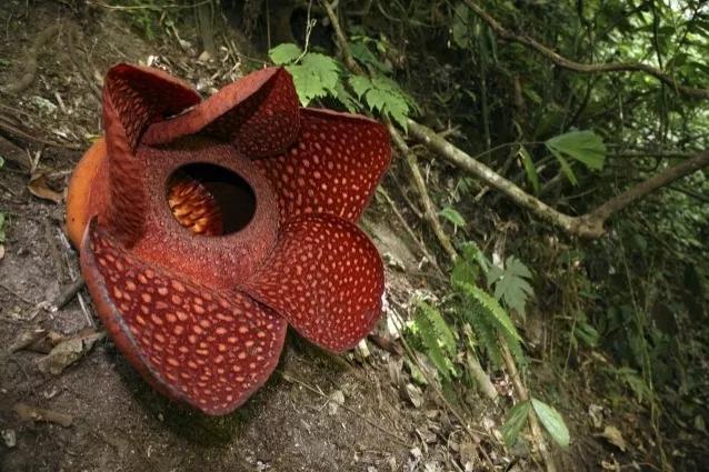 食人花也叫大王花,是一种腐生植物,它们外表娇艳,有5片巨大的花瓣,看起来就像一个敞开的“血盆”,直径约1.5米,重量可达16斤,是世界上最大的花,有着“花王”的美誉。