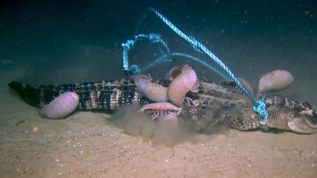 还有科学家,在墨西哥湾做过一个有趣的实验,将一只死去的鳄鱼扔进海底,对海洋的生物进行观察。结果,大王具足虫是最快赶来的,它们很快就将鳄鱼尸体团团围住。众所周知,鳄鱼皮是十分坚硬的,本来以为,大王具足虫面对这样的食物会有些难搞,没想到,没一会儿,它就将鳄鱼皮给咬开了,还有的钻进了鳄鱼的体内进行啃食。没多久,一只完好的鳄鱼就成了一堆白骨。