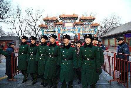 记者在现场看到,虽然雍和宫内外人潮涌动,但是秩序井然。多名武警战士、公安民警以及安保人员早在凌晨3时便陆续抵达现场。