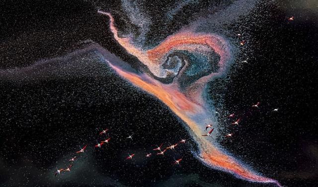 其次,纳特龙湖虽然矿物质含量非常高,但并不是没有生物能够在这里生存,这里生活着许多藻类生物,火烈鸟刚好属于滤食动物,它们的头部结构决定了它们能够以这里的藻类为食(其实很少有人知道的是,火烈鸟的颜色之所以呈现显然的粉红色,就是因为它们的食物是这里的大量水藻)。