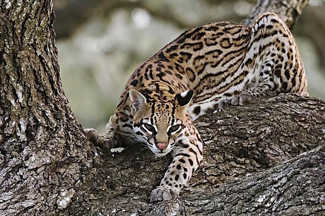 不过不要小瞧了豹猫的战斗力,同体型的动物中,豹猫可以说是打遍无敌手,是小动物们闻风丧胆的存在。豹猫虽不大,但是却可以将几公斤的鸡叼到树上去,小版金钱豹的名称也不是凭空而来的。