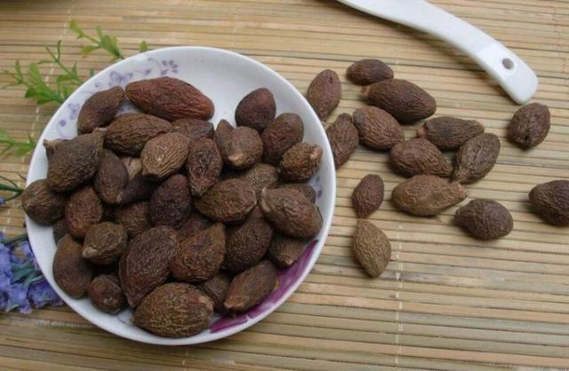 性状干燥种子呈椭圆形,状似橄榄,先端钝圆,基部略尖,长2~3厘米,直径l~1.5厘米。表面棕色至暗棕色,微有光泽,具细密的不规则皱纹,基部具浅色的圆形种脐。外种皮质轻而疏松,易剥落,遇水膨大成海绵状块。内种皮红棕色至棕黑色,先端有一黄白色的圆斑。剥去内种皮后,胚乳肥厚,成2片,暗棕色或灰棕色。子叶2片,紧贴于胚乳,菲薄而大。气无,久嚼有粘性。以个大、棕色、表面皱纹细、不碎裂者为佳。