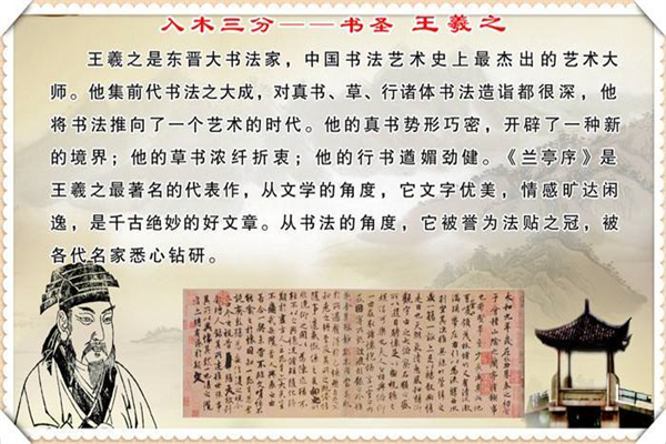 还有一次,当时的皇帝要到北郊去祭祀,让王羲之把祝辞写在一块木板上,再派工人雕刻。雕刻的工人在雕刻时非常惊奇,王羲之写的字,笔力竟然渗入木头三分多。他赞叹地说:“右军将军的字,真是入木三分呀!”