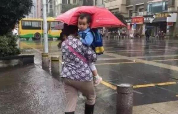 下雨的公路上,奶奶抱着孙子打着伞,可这位奶奶你可长点心吧,孩子没在伞里都不知道,看看这小家伙无助的眼神,真的太搞笑了,他可能怀疑自己是否是亲孙子!