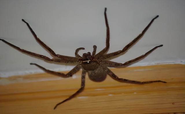 斑狩猎巨蟹蛛(学名:Heteropoda venatoria maculipes)是三种中最大的一种,也是两广最常见的那种。