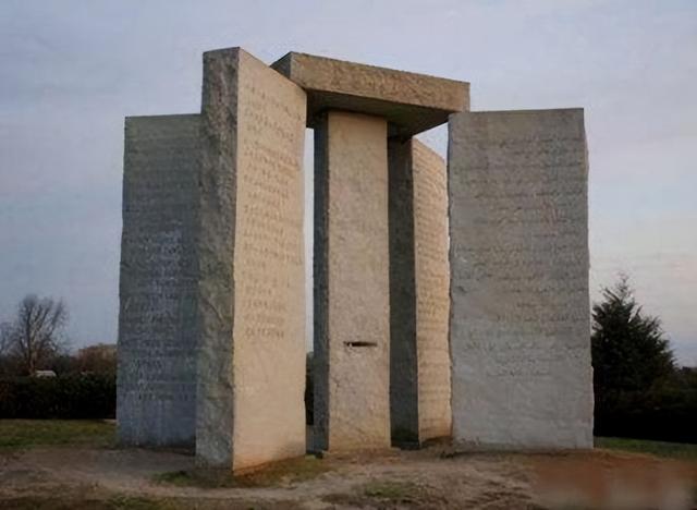比如说前些天登上热搜的美国佐治亚州巨石阵,就是一个例子,1979年,一群神秘人在佐治亚州埃尔伯特县建造了这个重达119吨的巨石建筑,上面有8种文字描写了一些对于未来的世界的担忧,其中有一条是,全球人口数量应该保持在5亿之下。