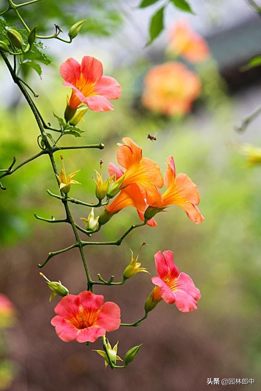 凌霄花是夏日少有的能开得灿烂、热烈的藤蔓植物,似乎是专为夏日而生。