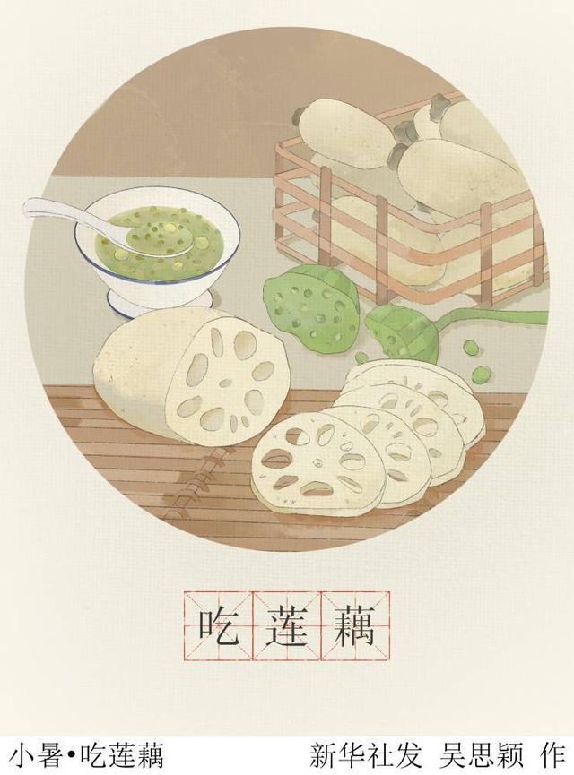 同时,古代民间有“食新”的习俗,即在小暑节气过后尝新米。农民将新割的稻谷碾成米后,做好饭供祀五谷大神和祖先,然后人人吃尝新酒等。此外,民间还有在夏日吃藕的食俗,该食材清热生津,非常适合炎热的夏季来食用。宋朝文学家陶弼就在《咏藕》一诗中写道:“与君消酷暑,瓜李莫相猜。”