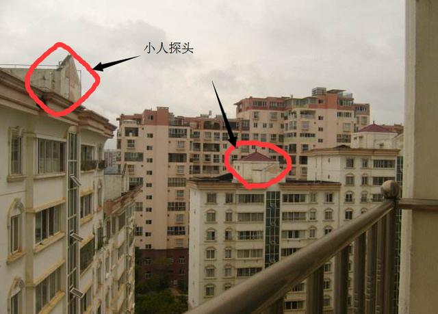 还有一种情况是住宅周围建筑的顶上有其他设施,导致突出部分,这样的格局也称之为探头煞。
