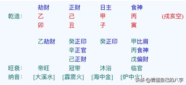这个八字里,乙的天乙贵人是子,己的也是子,甲的是丑。四柱三个天乙贵人,也叫年月日互换贵人,至贵。尤其这个八字子丑寅卯地支相连,更是难得。