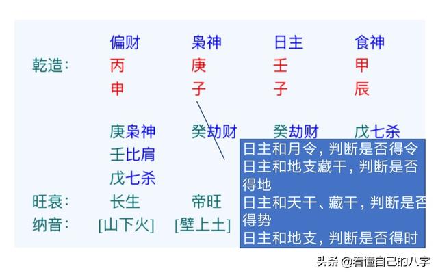 判断旺衰要看四个方面:得令、得地、得势、得时。