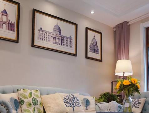 建筑风格的装饰画,在美式、古典等风格里面比较常见,通过家具与挂画的相呼应,增强空间的统一性,让空间显得更加端庄档次。