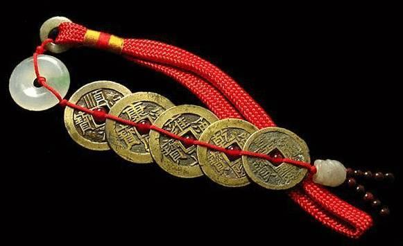 中国古代民间一直有用古钱币驱邪的习俗。史载,将方孔通宝钱不拘大小,以红线悬于颈间,取铜钱历经万人手之实,汇集百家之阳气,可抵御邪祟鬼魂。