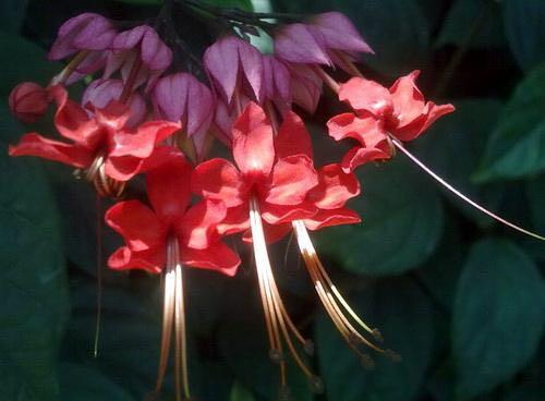 龙吐珠养殖简单,喜阳光充足的环境,如果光照不足会徒长,不开花。到夏季高温时不能烈日直射,否则叶子发黄,但龙吐珠喜高温,而且耐热性强,在30度以上高温只要供水充足,仍能正常生长。不耐寒,冬天温度不能低于8度,否则会出现掉叶现象。