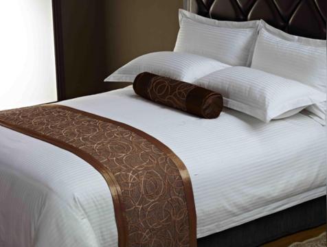 4.品牌宣传:有些酒店会把品牌logo印在上面,从而达到宣传效果,同时,不同品牌的酒店会选择不同类型的床旗,也就赋予了酒店的独特性,成为了区别于别的酒店品牌的标志。