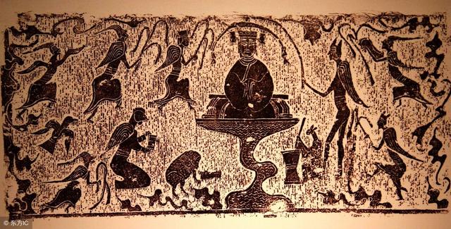 与自上而下的仙化西王母不同,神化西王母是一场自下而上的运动。所谓神化,是指西王母向至上神方向的转化。战国后期,西王母开始向人化神灵的方向发展。进入汉代,西王母脱去了原始宗教的色彩,不仅具有了人格神的品质,而且还向至上神的方向发展,这是一个神化的过程。