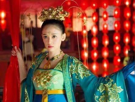 这身打扮,是剧里最抢眼最好看的,也是我最喜欢的,相信大家也很喜欢吧?一身大红色的衣服,很是艳丽,但是不浮夸,显得很是高端大气,高高的发髻盘起,两侧是斜插金色钗环,在黑色的发色中很突出,耳环和金钗都是同一个色系,给人很贵气的感觉,和大红的衣服很搭!