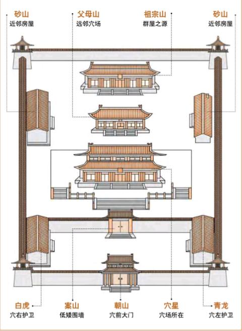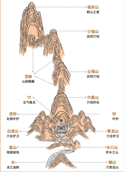 11、若四周的群山,如青龙、白虎、案山、朝山,距离明堂较近,则他们的量体应该小。如果四周的群山较为高大,则他们离明堂的距离就应该较远。