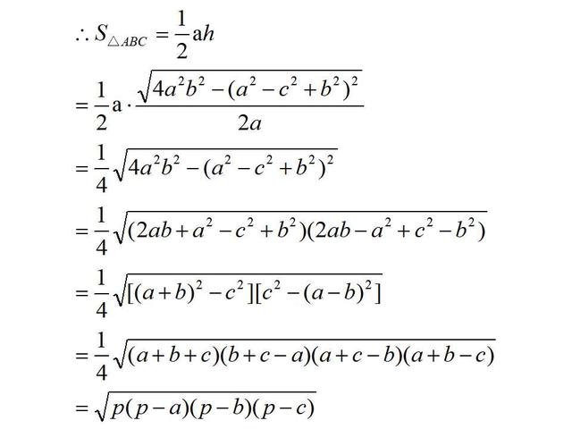 三角形海伦公式推导证明 MySEO专员 2023-09-04 23:01:10 知识库 浏览:208次 海伦公式及其推导过程三角形海伦公式推导证明 海伦公式 利用三角形的三条边的边长直接求三角形面积的公式。(a、b、c分别为三角形三条边的边长,p为三角形周长的一半) 推导过程 展开全部 喜欢 () 上一篇:昆布茶是什么(昆布茶的功效与作用) 下一篇:韦应物是哪个朝代的 版权声明:本文内容或图片均来于网络,如若侵权,请联系我们。 相关推荐 三角形海伦公式推导证明 小编推荐 中国的10大超市 女性很少对男性一见钟情 外国女人嫁到中国的人数 女人内心的秘密(女人内部不外传11大机密) 买suv,记住这口诀不纠结 不建议买的10大电视 《禁庭》尤四姐讲的是什么 池中之物是什么意思(池中之物是成语么) 巴沙木是世界上最轻的木材(巴沙木结实吗) 十大恐怖歌曲(这世界十大禁曲) 天福茗茶属于什么档次 太奶奶是什么辈分(曾祖辈) 蒙顶茶属于什么茶 东风夜放花千树,更吹落,星如雨:元宵节 烈日灼心的真相到底是什么 2024年全国禁止电动车是真的吗(叫停电动三四轮车上路)