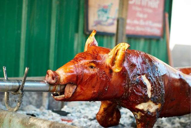 色泽红润,形态完整,皮酥肉嫩,肥而不腻,又鲜又嫩,入口奇香。其烤制方法早在公元前成书的《礼记》中就有记载,周朝时烤猪(炮豚)是“八珍”之一。直到清朝灭亡前,烤全猪还是宫廷宴席中的“上上品”。