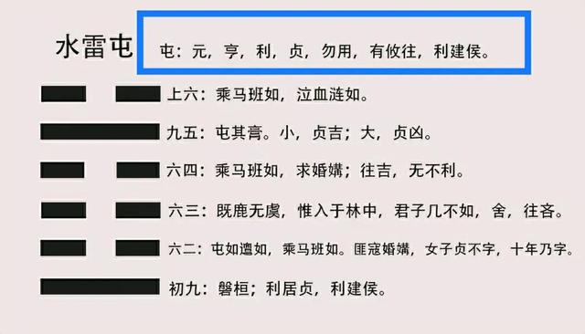 今天,我们唠嗑的核心话题只是水雷屯的卦辞:元,亨,利,贞,勿用有攸往,利建侯。