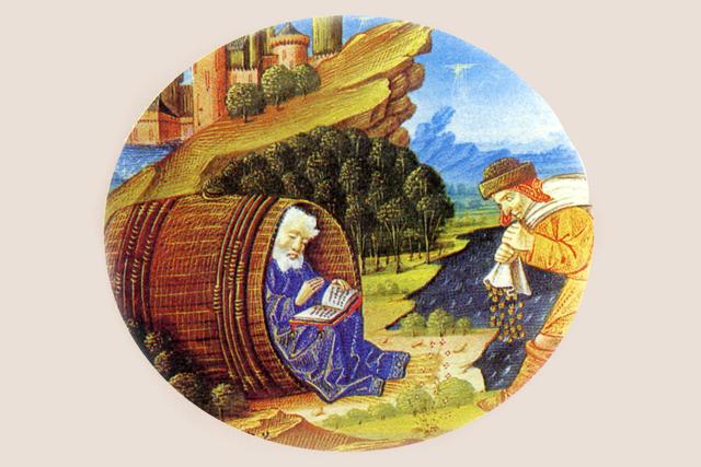 古希腊哲学家、犬儒学派的创始人第欧根尼,住在借来的大桶里,放弃一切对物质的享受与舒适的追求。(视觉中国/图)