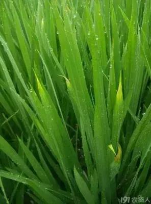 稻子幼叶,跟杂草一样长扁型,叶耳是稻叶叶环两端长出的耳状物,叶舌则是稻叶叶环内长出的薄膜,叶脉平行,中脉明显,绿色,中肋、边缘或尖端有时会有紫色色素。