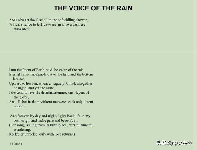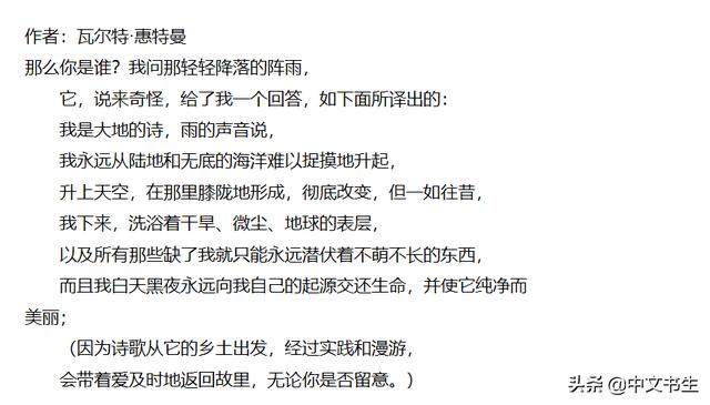 值得一提的是惠特曼还是美国文学之父,由此可见他的诗到底有多么重要。