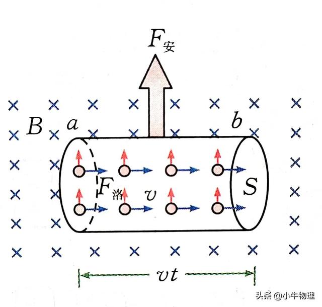 ③整段导线所受的安培力F安可看成是作用在每个运动电荷上的洛伦兹力F洛的合力,即F安=NF洛,则每个自由电荷所受洛伦兹力的大小为F洛=qvB.