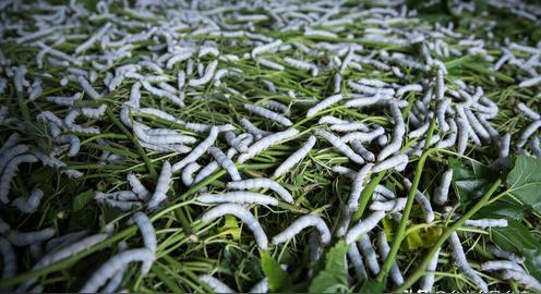 四龄蚕宝宝也叫大蚕,食量明显增大,生长很快,食桑叶5天后休眠12个小时第四次脱皮;五齡,经过四次脱皮的蚕宝宝食量大增,这阶段的进食桑叶量占总食叶量的75%,7天以后蚕体开始缩短变亮变成熟蚕,此时不再进食,开始吐丝结茧。