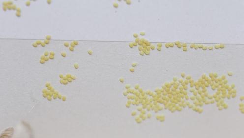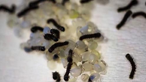 蚕卵:一只雌蚕可产蚕卵500粒,刚产下的蚕卵像细芝麻粒,为淡黄色,一天后变成赤豆色,3天后又变成紫色,便开始孵化出蚕蚁了,再过5天左右就可出壳了。