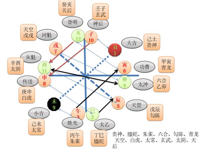 万一真的记不起来,可以用丑未顺逆法。甲从未开始顺布,由于地支十二个,遇魁罡,即戌辰跳过,天翘西北,地塌东南。同理,甲从丑逆布也是天乙贵人。