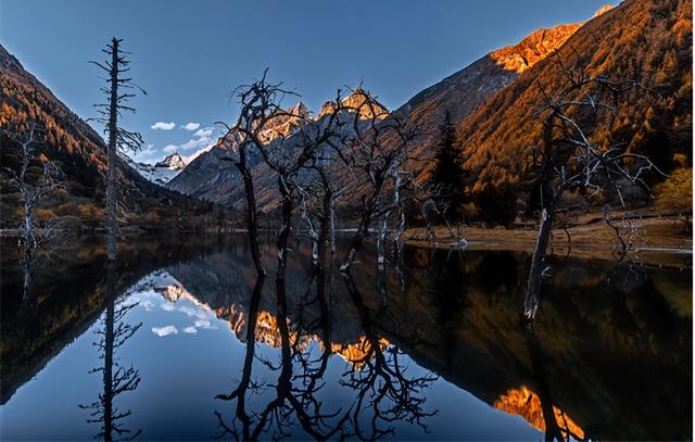 一山有四季,十里不同天,夏日的四姑娘山,清澈通透的蓝天,洁白如絮的云朵,漫山掩不住绿意的草木,火红、金黄、玫瑰色等色彩,浑然一体的缤纷霞光.……似是打翻了调色盘一般,如此迷人夺目。月的四姑娘山,秋意正浓,雪山与彩林搭配无比美丽。在秋日的阳光下,洁白晶莹的雪山和深浅交错的彩林交相辉映,构成一幅五彩缤纷的天然画卷,徒步在山水间、露营在星空下,远离城市的喧嚣,壮观的景致让人流连忘返。