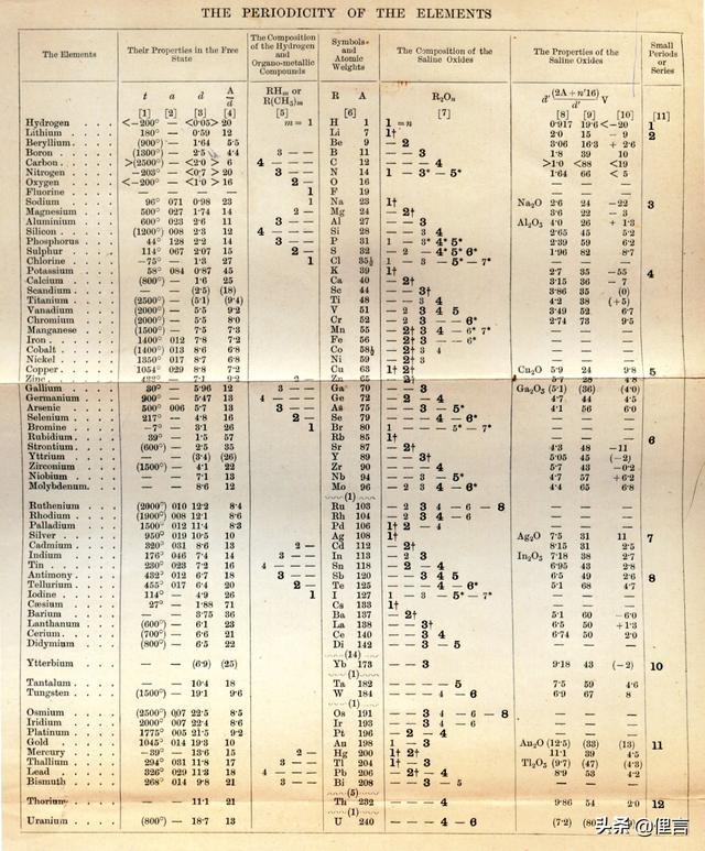 凑巧的是,他翻开了牛奶公司的来信,发现在其背面标注了牛奶中包含的不同元素的原子量。他兴奋地把现已发现的63种元素做成63个小卡片。经过精心比对,他认为他发现了其中的规律。