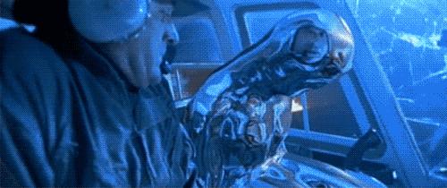 让我记得最清楚的是那个液态金属机器人T1000,全身是由液态金属构成,在烈火中燃烧,被武器爆头都可以安然无恙,它就跟孙悟空一样,无所不能的存在着。