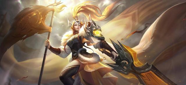 出场动画就很热血,花木兰手执酒杯面向众人,有一种凯旋归来的意味,整体也是黄金配色,雍容华贵。局内特效以黑黄白的水墨为主,木兰回城时,选手会出现和木兰击掌,并从正中间升起一座金光闪闪的奖杯,象征着选手和英雄一起完成比赛,赢得荣誉。手感沉重,硬朗有力,有打击感,但是技能有些过于厚重,以至于有一种走路变慢了的错觉。