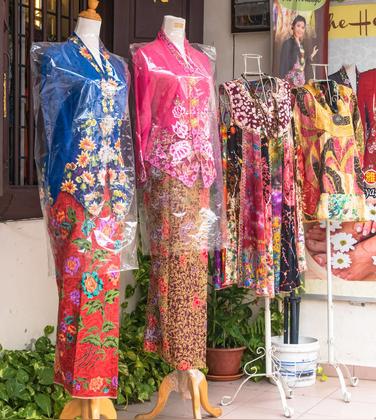 娘惹服饰的下装被称为纱笼,搭配的时候是根据上衣的绣花颜色来选择的而不是根据上衣的颜色。