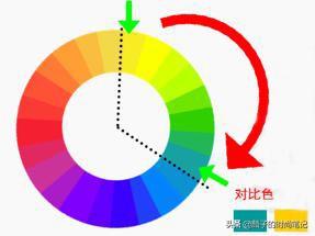 互补色是在色相环上180°相对的两个颜色,而对比色则是在色相环上150°到180°范围内相对的两个颜色。
