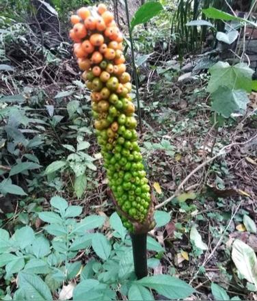 在我国陕西、甘肃、宁夏及以南各地生长着一种天南星科草本植物,在《种子植物手册》中记载为魔芋,人们通常叫魔芋,在《中国植物志》中记载为磨芋,它全株有毒,但人们常加工食用或药用,具有经济价值。今天我从植物学的角度谈谈这种植物的一些情况。